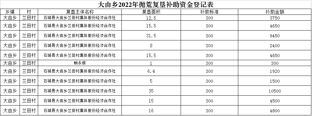 大由鄉(xiāng)蘭田村2022年拋荒復(fù)墾補(bǔ)助資金登記表