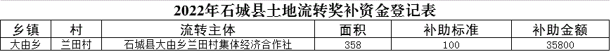 大由鄉(xiāng)蘭田村2022年石城縣土地流轉(zhuǎn)獎(jiǎng)補(bǔ)資金登記表