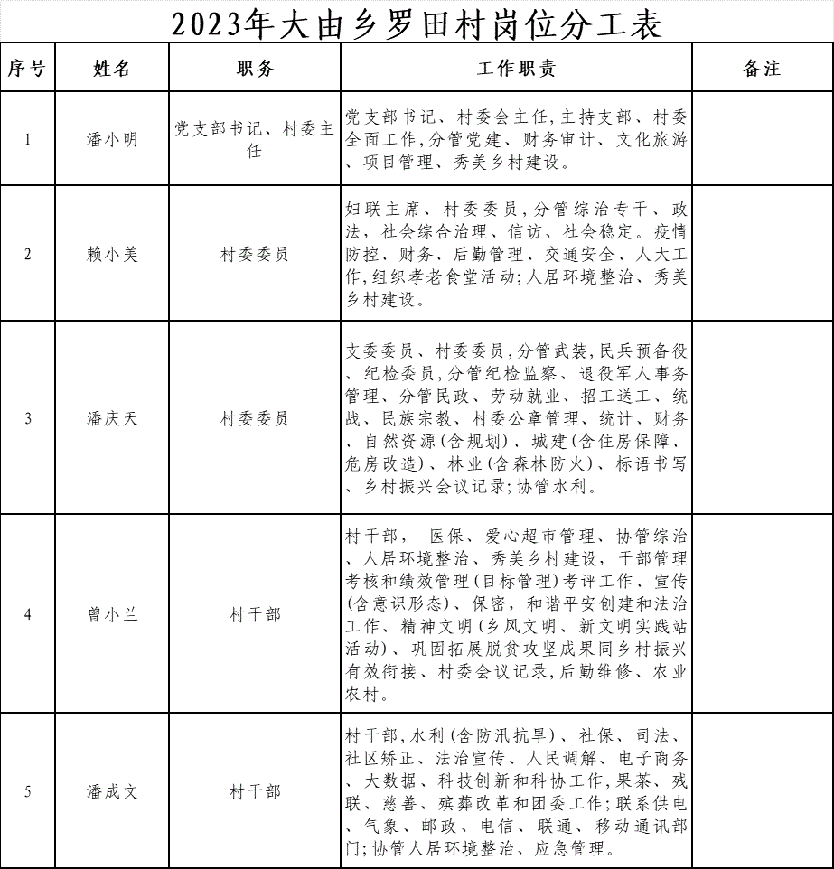 2023年大由鄉(xiāng)羅田村崗位分工表