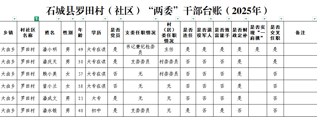 石城縣羅田村(社區(qū))“兩委”干部臺(tái)賬(2025年)