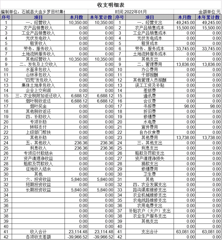 大由鄉(xiāng)羅田村1-6月收支明細(xì)