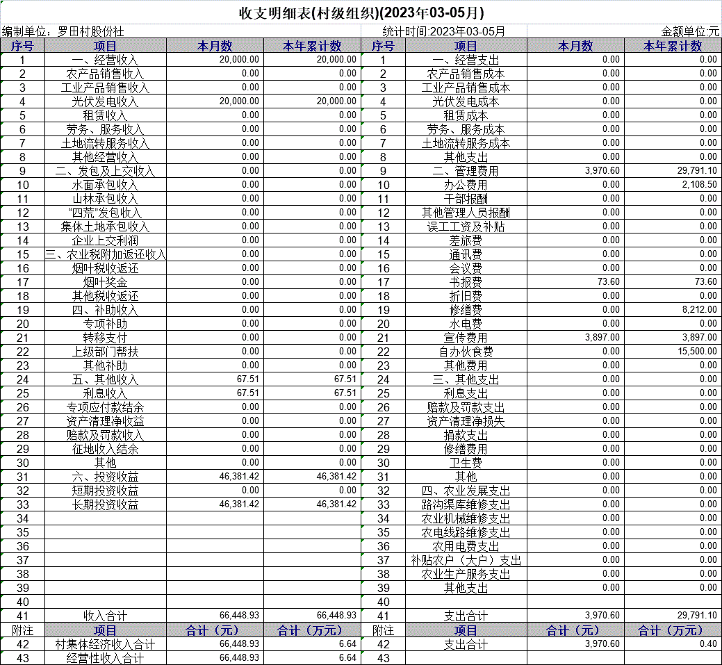 大由鄉(xiāng)羅田村2023年3-5月收支明細(xì)
