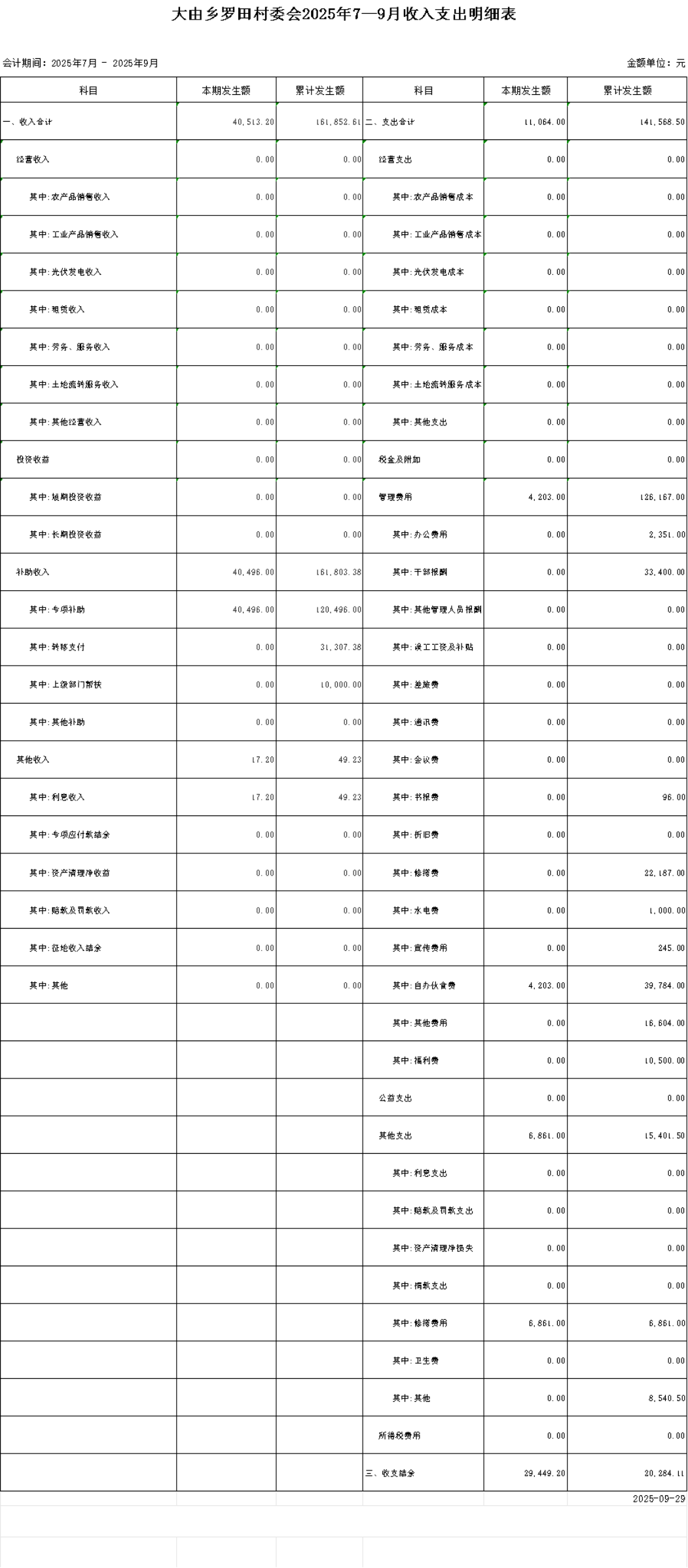 大由鄉(xiāng)羅田村委會(huì)2025年7—9月收入支出明細(xì)表