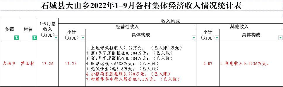 石城縣大由鄉(xiāng)2022年1-9月羅田村集體經濟收入情況統(tǒng)計表