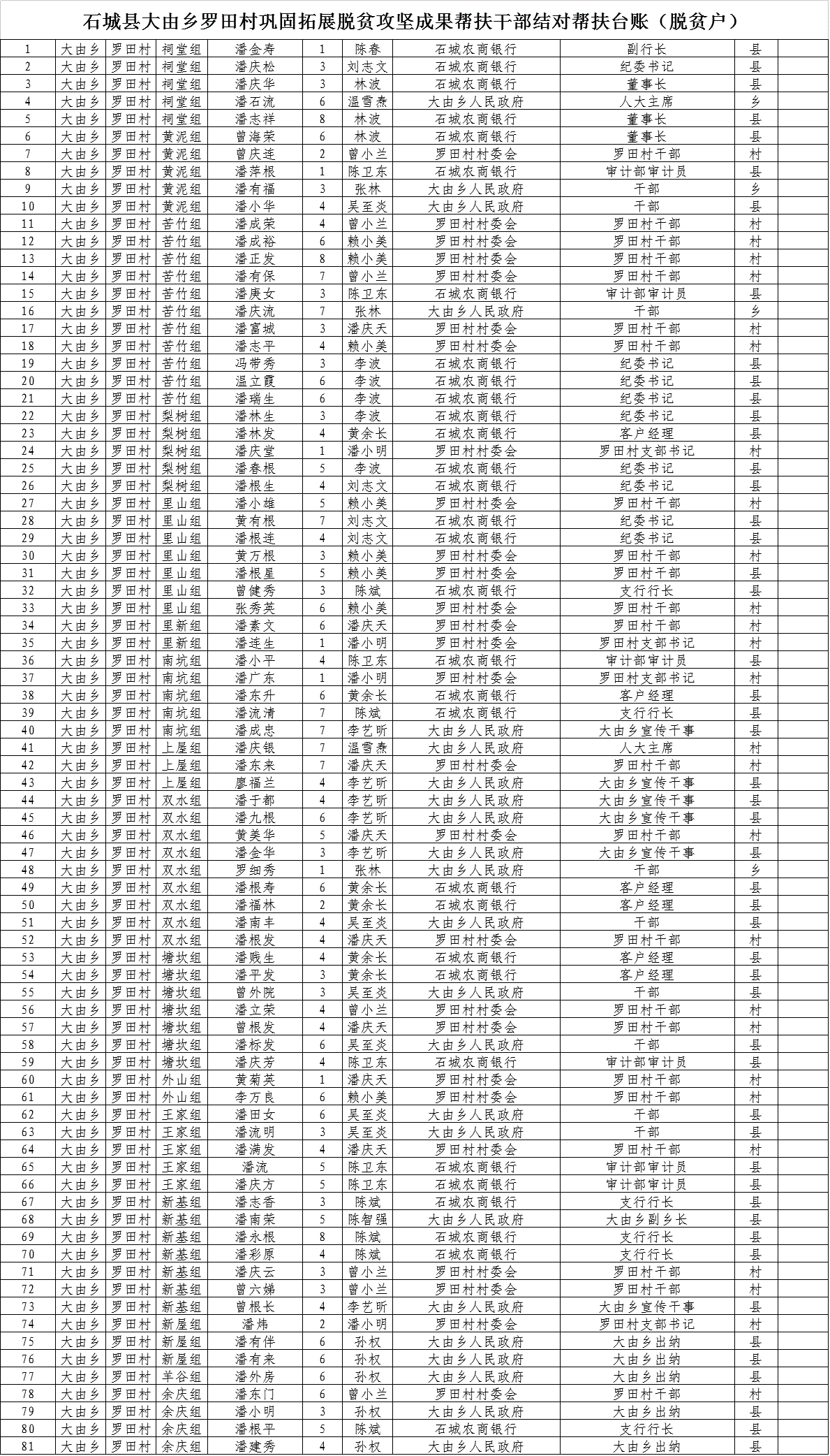 石城縣大由鄉(xiāng)羅田村鞏固拓展脫貧攻堅(jiān)成果幫扶干部結(jié)對(duì)幫扶臺(tái)賬(脫貧戶)