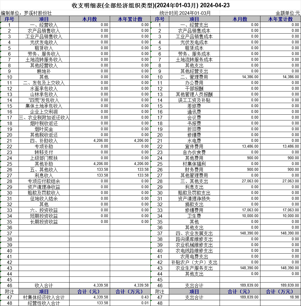 【財(cái)務(wù)收支】小松鎮(zhèn)羅溪村2024年1季度財(cái)務(wù)收支公示