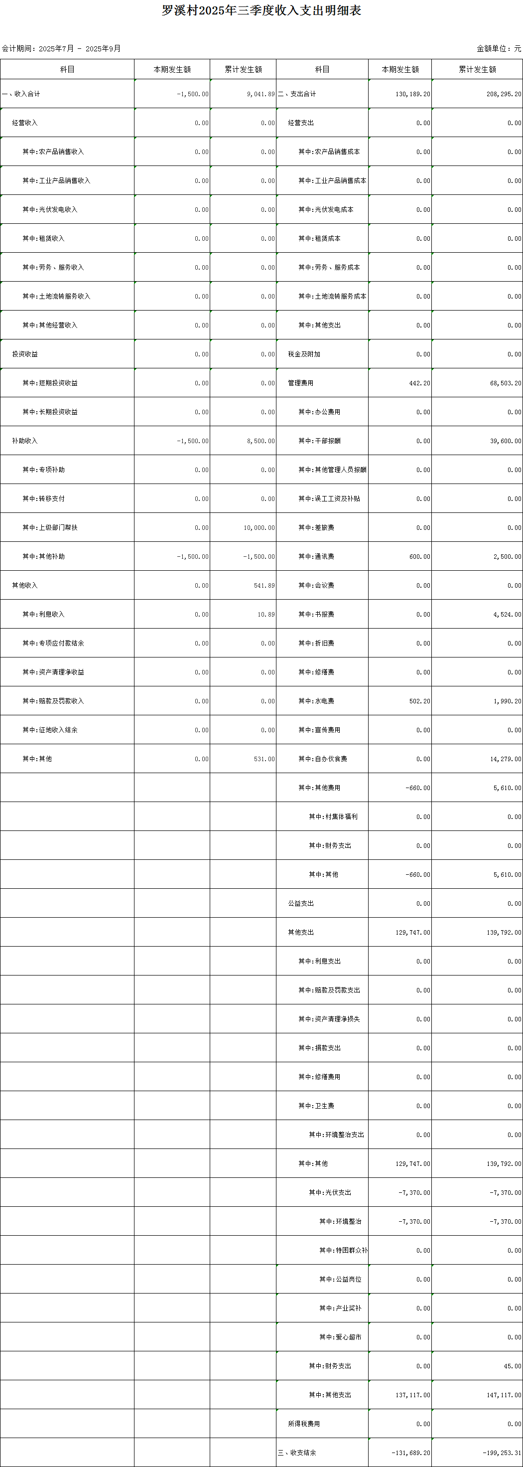 【財(cái)務(wù)收支】小松鎮(zhèn)羅溪村2025年3季度財(cái)務(wù)收支公示