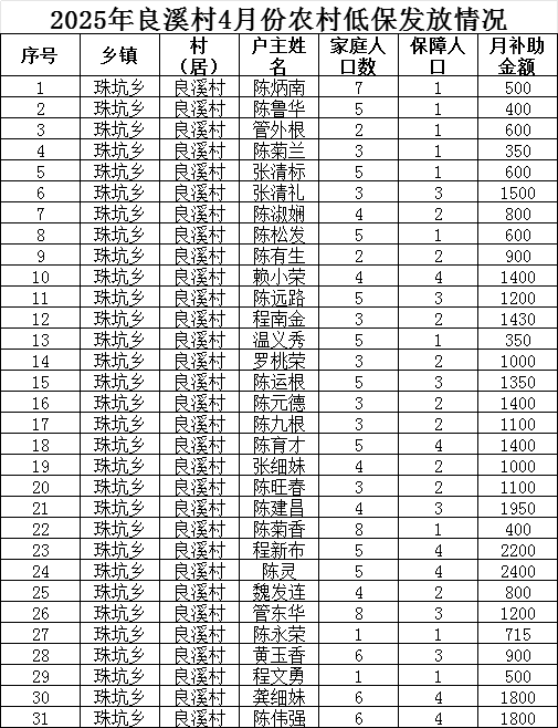 2025年良溪村4月份農(nóng)村低保發(fā)放情況