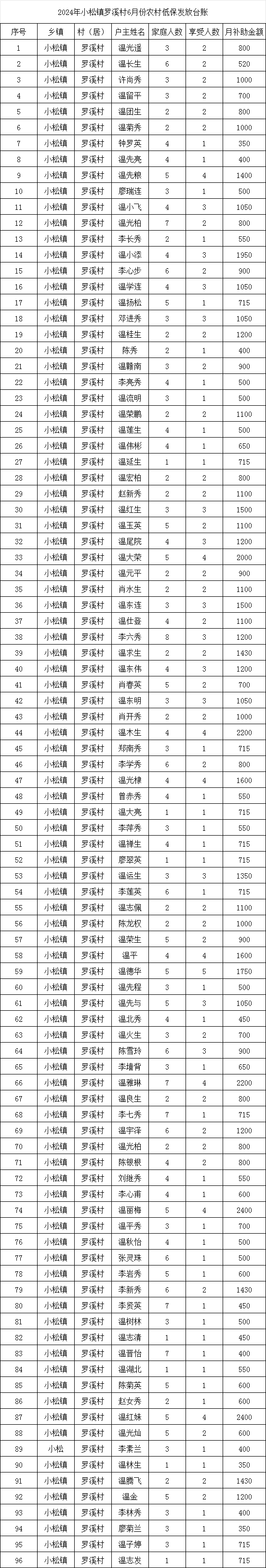 【最低生活保障】小松鎮(zhèn)羅溪村2024年6月農(nóng)村低保發(fā)放公示