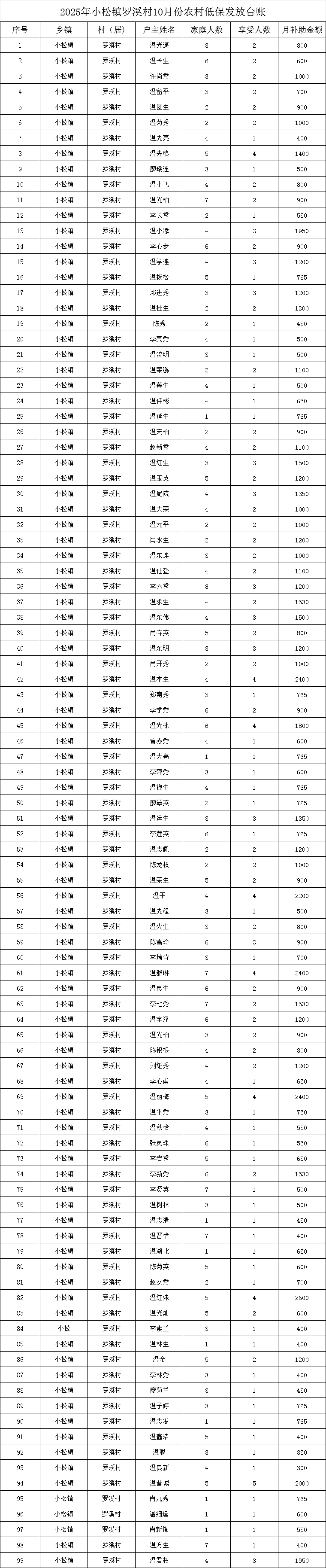 【最低生活保障】小松鎮(zhèn)羅溪村2025年10月農(nóng)村低保發(fā)放公示