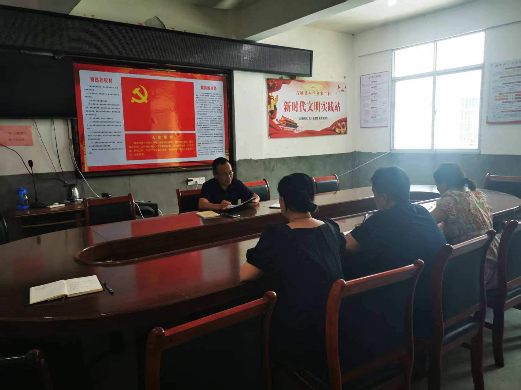 木蘭村書記傳達鄉(xiāng)會議精神,布置當前重要工作。