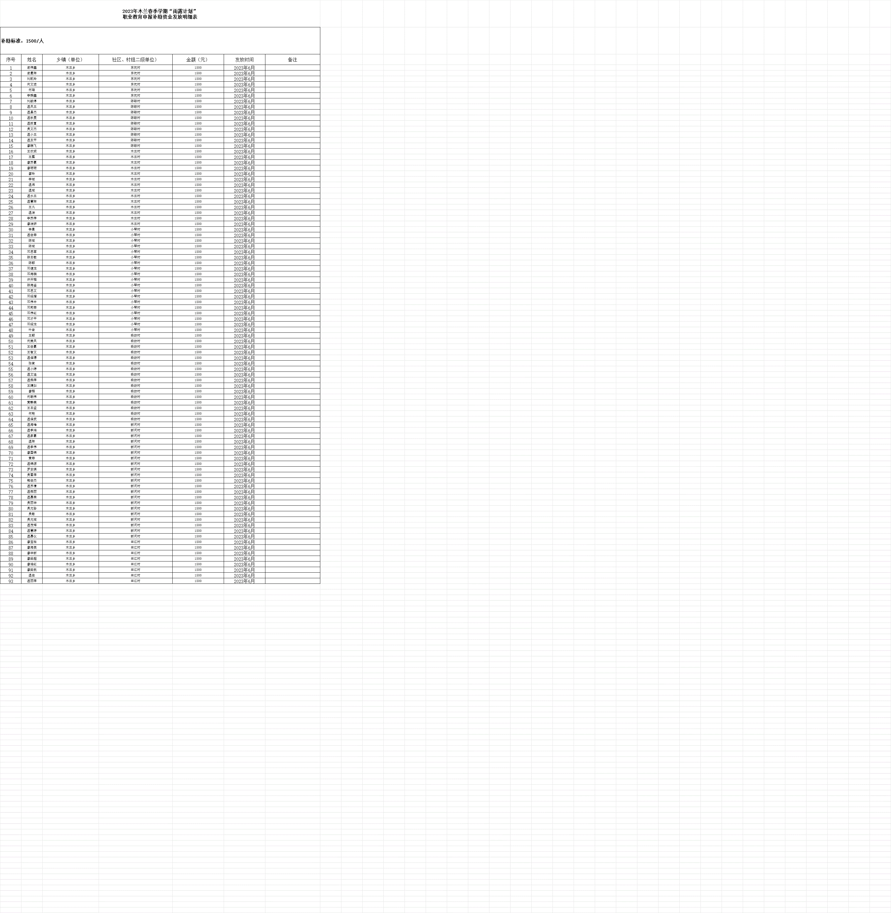 2023年木蘭春季學(xué)期“雨露計(jì)劃”職業(yè)教育申報(bào)補(bǔ)助資金發(fā)放明細(xì)表