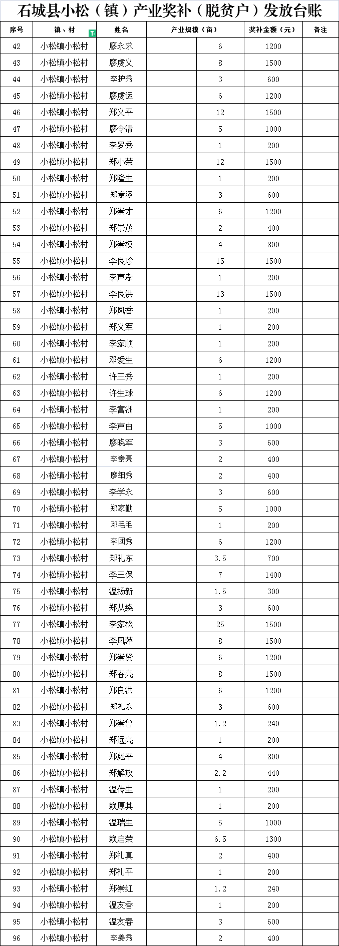 【產(chǎn)業(yè)扶持】石城縣小松(鎮(zhèn))小松村產(chǎn)業(yè)獎(jiǎng)補(bǔ)(脫貧戶)發(fā)放臺(tái)賬