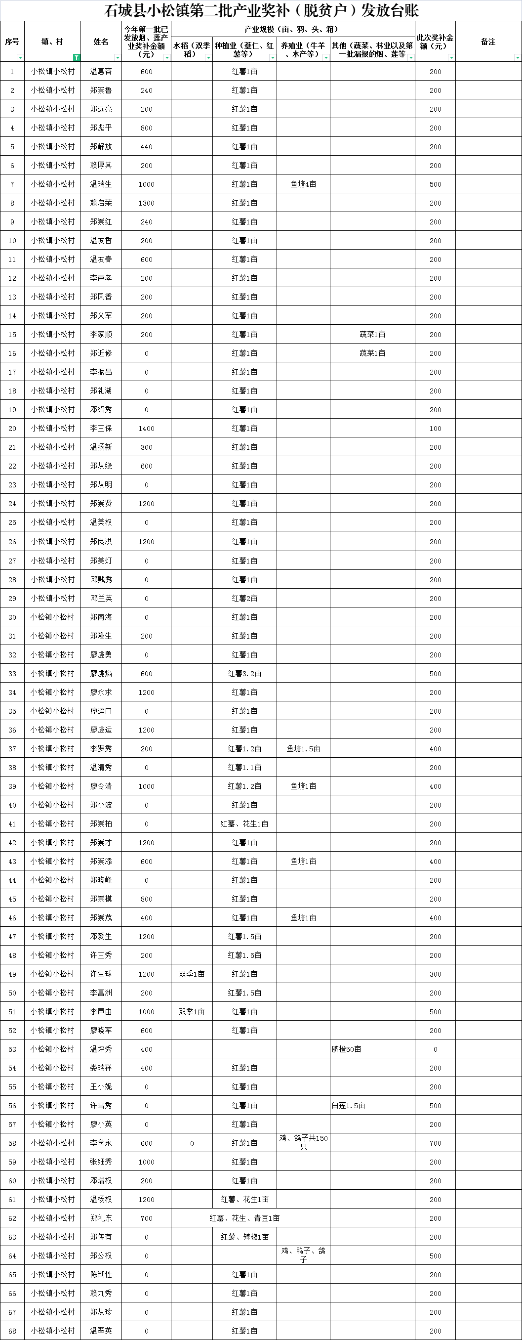 【產業(yè)扶持】石城縣小松鎮(zhèn)小松村第二批產業(yè)獎補(脫貧戶)發(fā)放臺賬