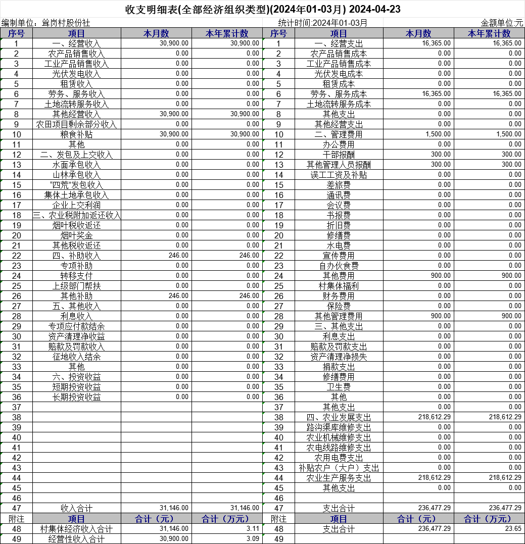 【財務(wù)收支】小松鎮(zhèn)聳崗村2024年1季度財務(wù)收支公示