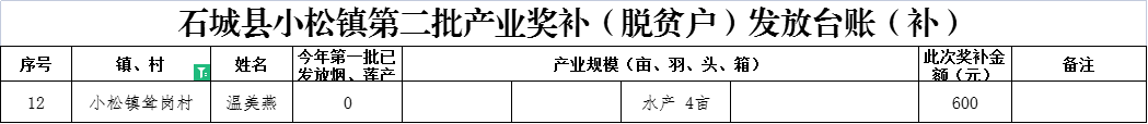 【產(chǎn)業(yè)扶持】石城縣小松鎮(zhèn)聳崗村第二批產(chǎn)業(yè)獎補(脫貧戶)發(fā)放臺賬(補)