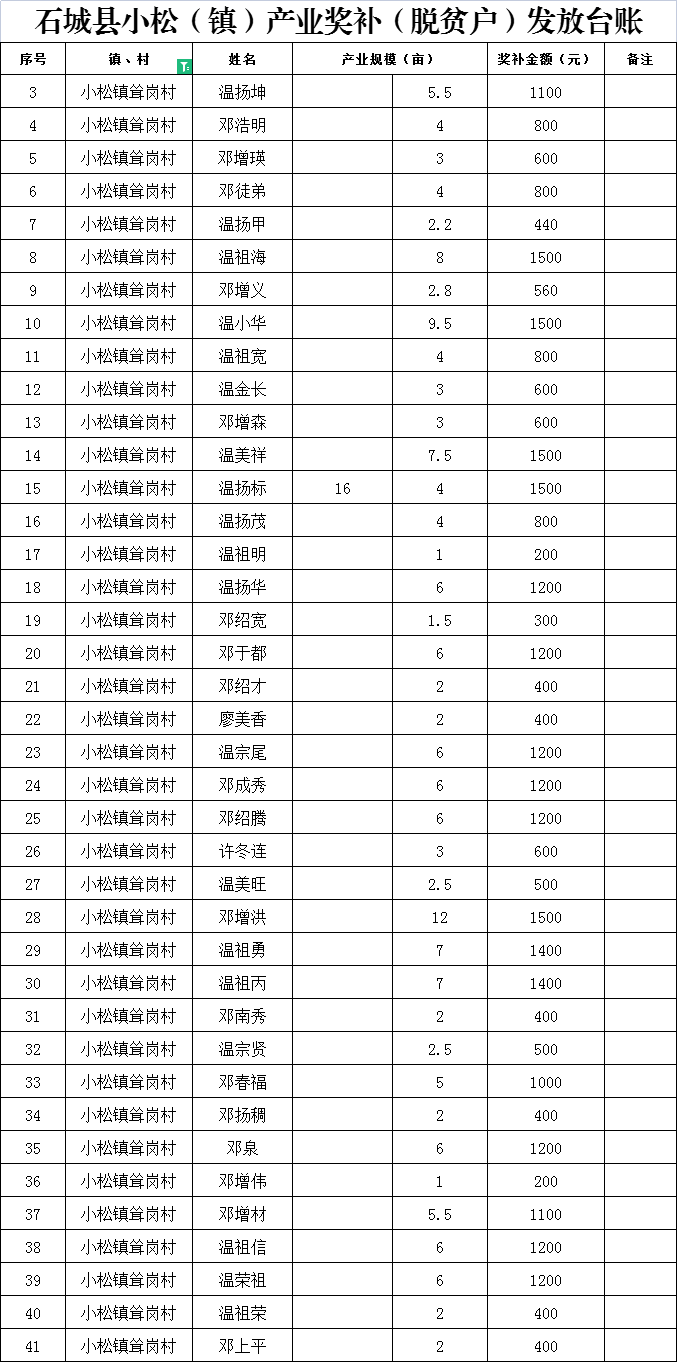 【產(chǎn)業(yè)扶持】石城縣小松(鎮(zhèn))聳崗村產(chǎn)業(yè)獎(jiǎng)補(bǔ)(脫貧戶)發(fā)放臺(tái)賬