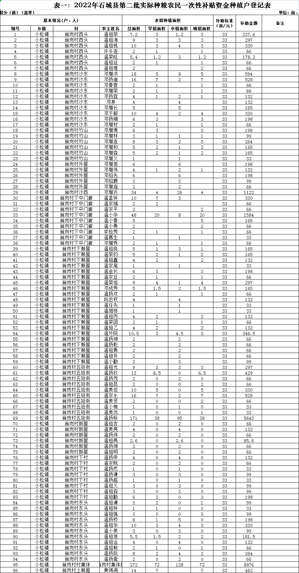 【產業(yè)扶持】聳崗村2022年第二批實際種糧農民一次性補貼資金種植戶公示表