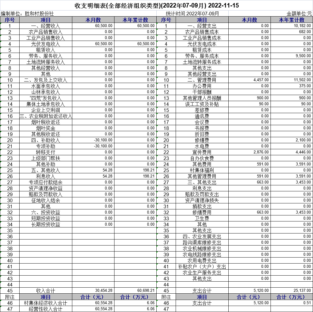 【財(cái)務(wù)收支】小松鎮(zhèn)勝和村2022年3季度財(cái)務(wù)收支公示