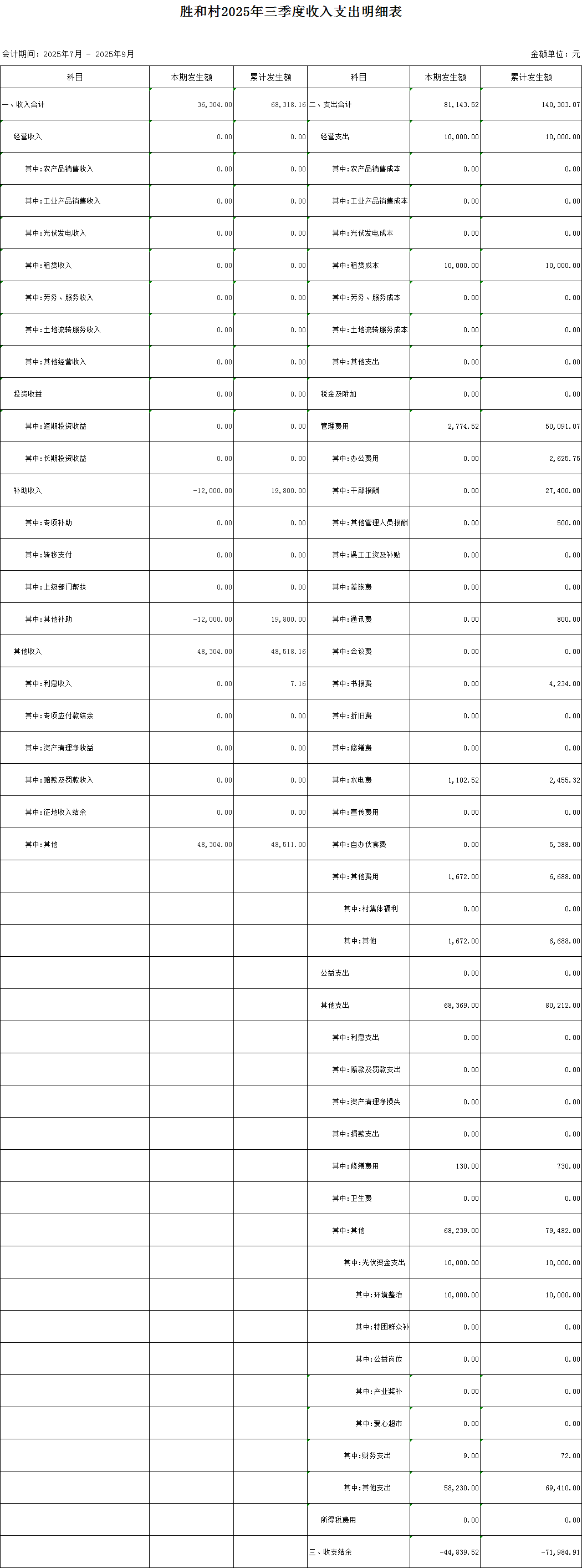 【財務收支】小松鎮(zhèn)勝和村2025年3季度財務收支公示