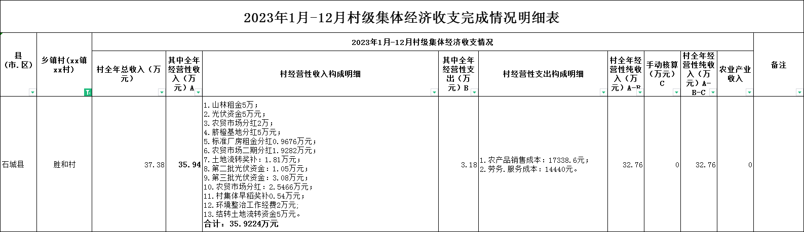 【集體統(tǒng)一經(jīng)營的經(jīng)營性資產(chǎn)】石城縣小松鎮(zhèn)勝和村2023年村集體經(jīng)濟收入情況公示表