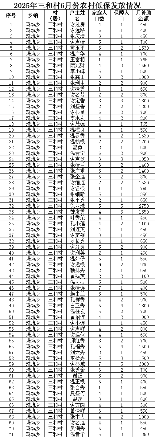 2025年三和村6月份農(nóng)村低保發(fā)放情況