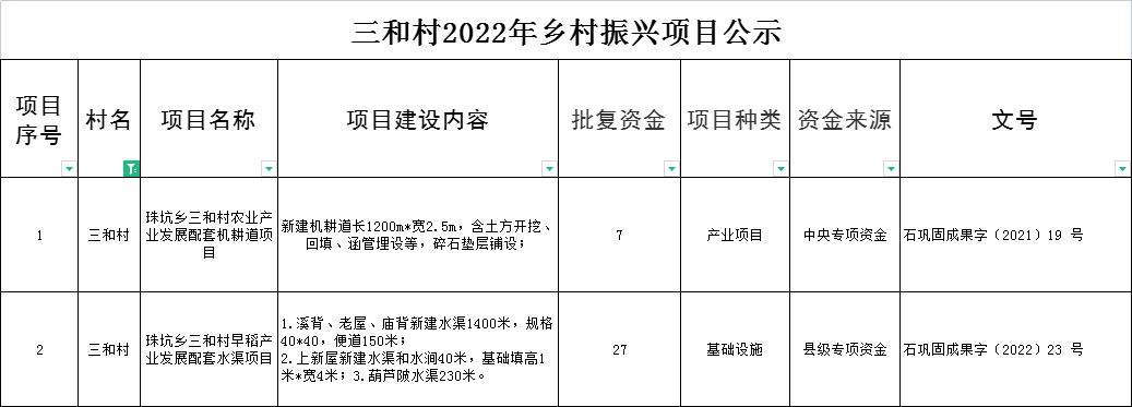 【公告公示】三和村2022年鄉(xiāng)村振興項(xiàng)目公示