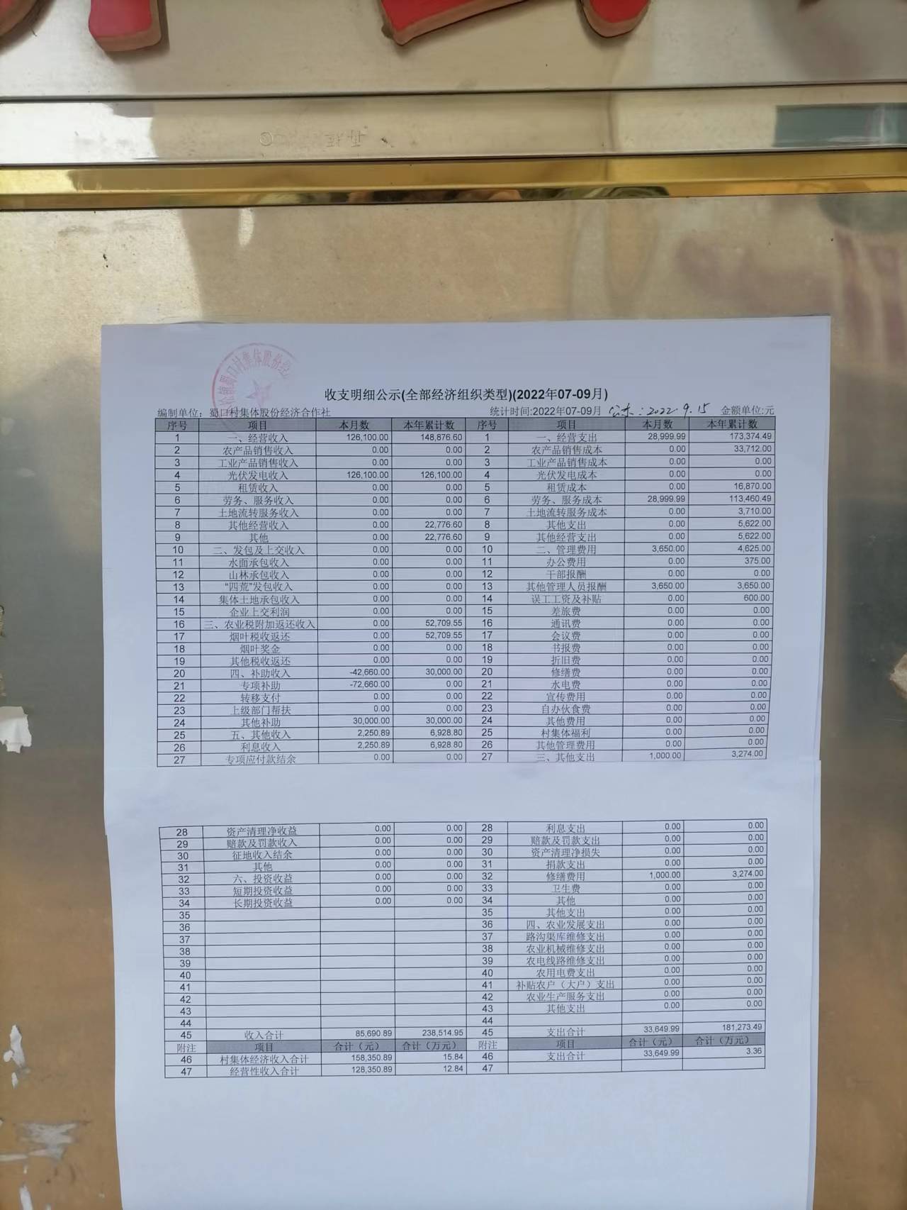 【財務收支】小松鎮(zhèn)蜀口村2022年7-9月財務收支公示