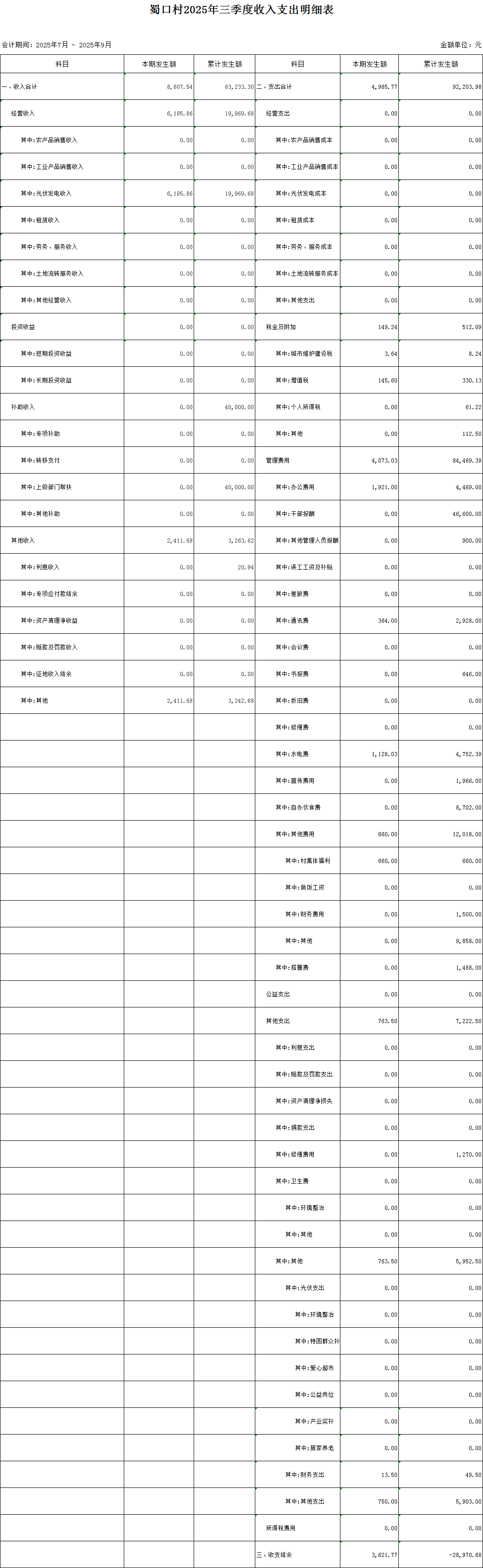 【財務(wù)收支】小松鎮(zhèn)蜀口村2025年3季度財務(wù)收支公示