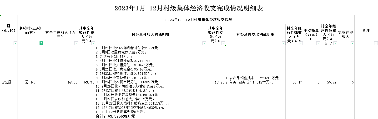 【集體統(tǒng)一經(jīng)營(yíng)的經(jīng)營(yíng)性資產(chǎn)】石城縣小松鎮(zhèn)蜀口村2023年村集體經(jīng)濟(jì)收入情況公示表