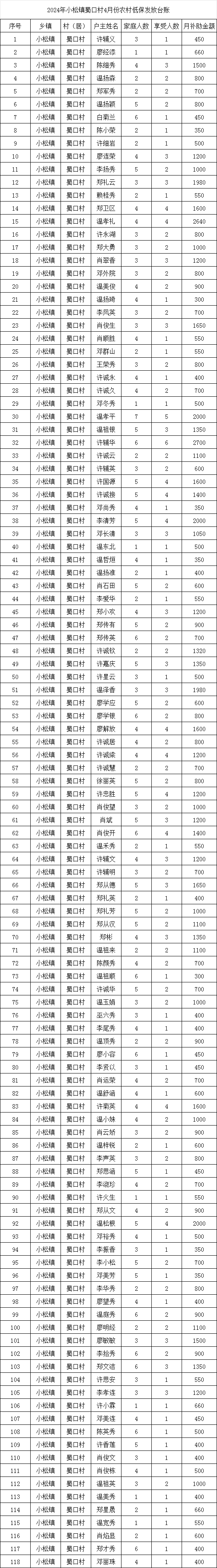 【最低生活保障】小松鎮(zhèn)蜀口村2024年4月農村低保發(fā)放公示