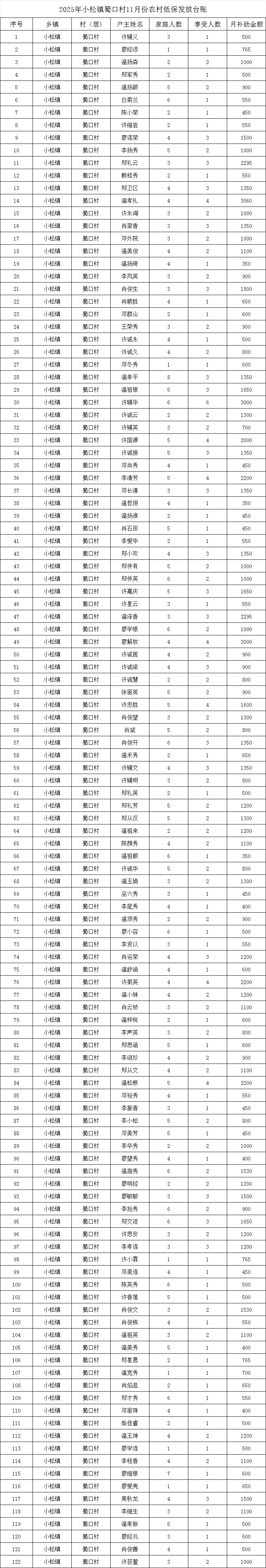 【最低生活保障】小松鎮(zhèn)蜀口村2025年11月農村低保發(fā)放公示