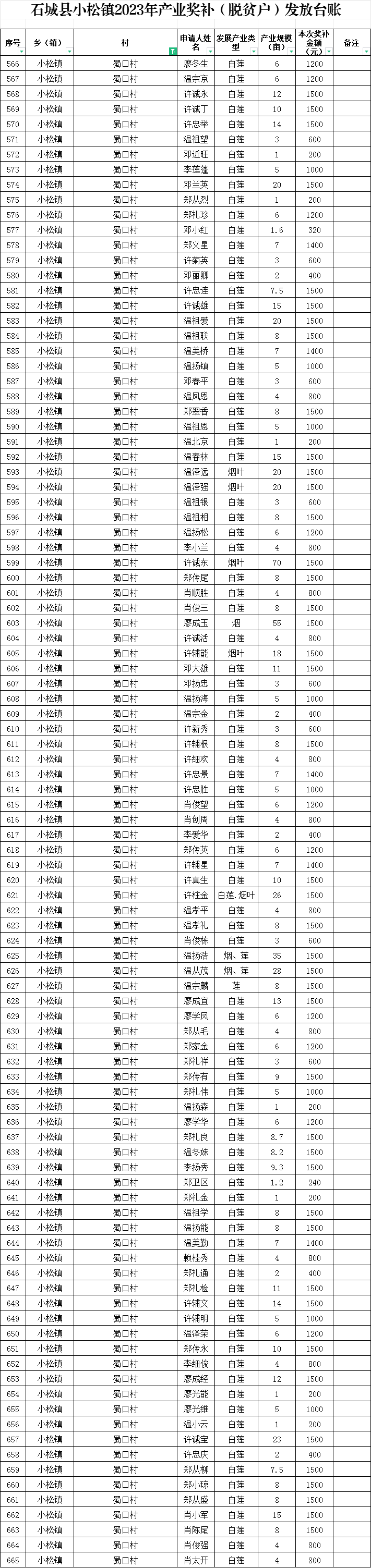 石城縣小松鎮(zhèn)蜀口村2023年第一批產(chǎn)業(yè)獎補發(fā)放臺賬