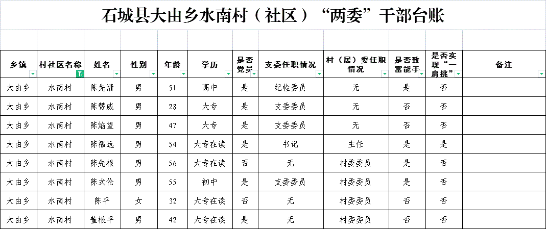 石城縣大由鄉(xiāng)水南村(社區(qū))“兩委”干部臺(tái)賬
