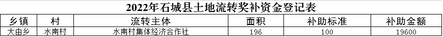 大由鄉(xiāng)水南村2022年石城縣土地流轉(zhuǎn)獎補(bǔ)資金登記表