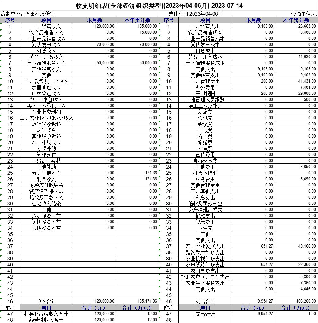 【財務(wù)收支】小松鎮(zhèn)石田村2023年2季度財務(wù)收支公示