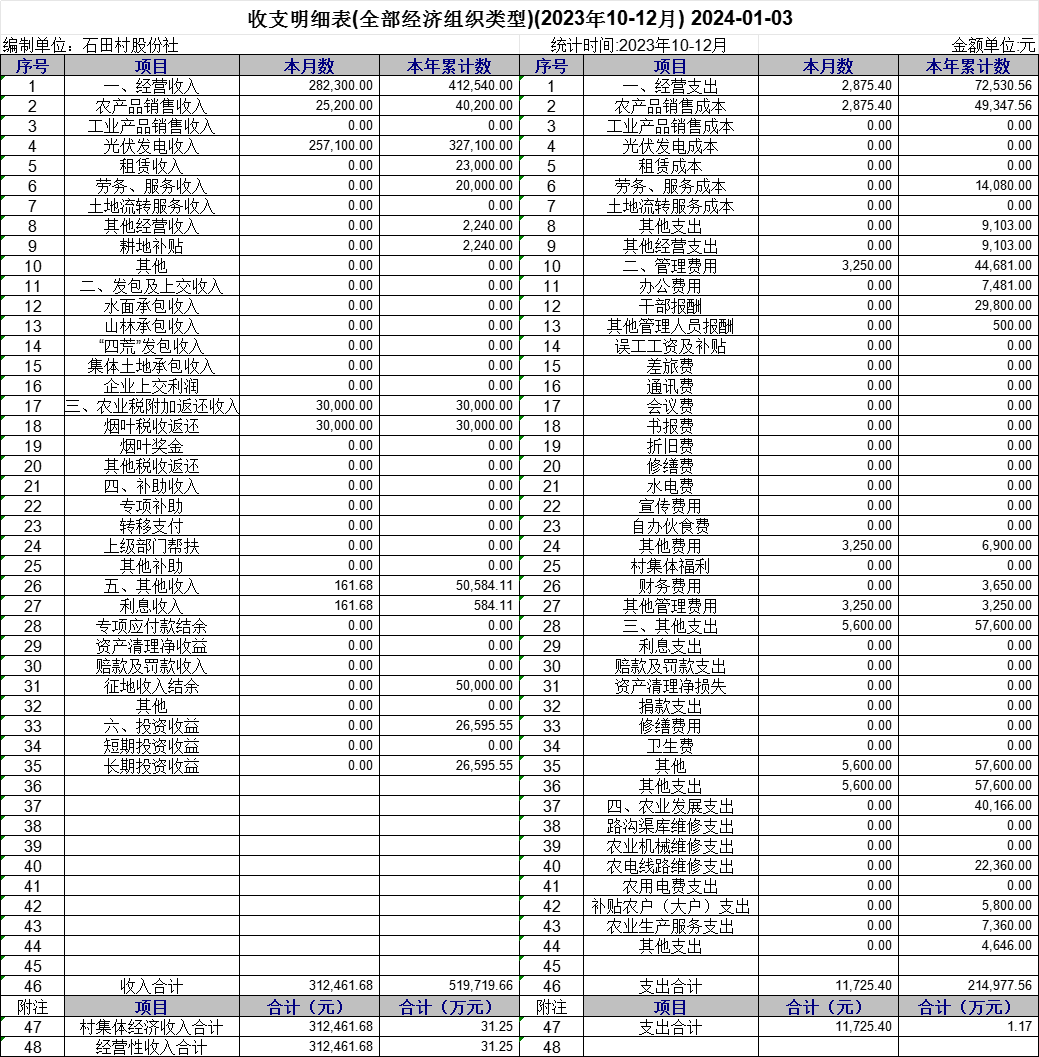 【財(cái)務(wù)收支】小松鎮(zhèn)石田村2023年4季度財(cái)務(wù)收支公示