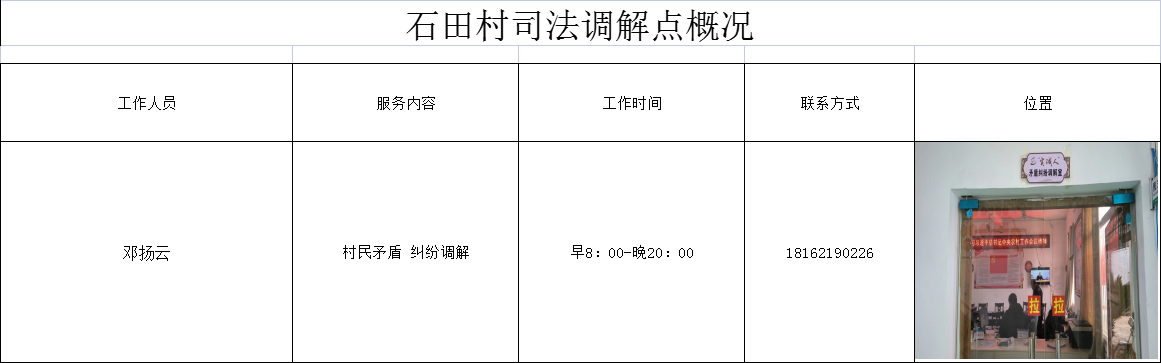 【農(nóng)村服務(wù)點(diǎn)】石城縣小松鎮(zhèn)石田村司法調(diào)解點(diǎn)概況信息