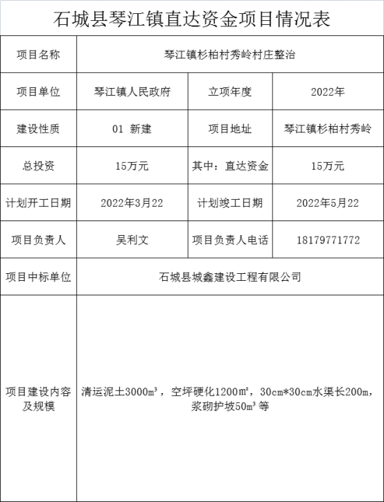 【公告公示】石城縣琴江鎮(zhèn)杉柏村2022年鄉(xiāng)村振興補助資金村莊整治項目公示