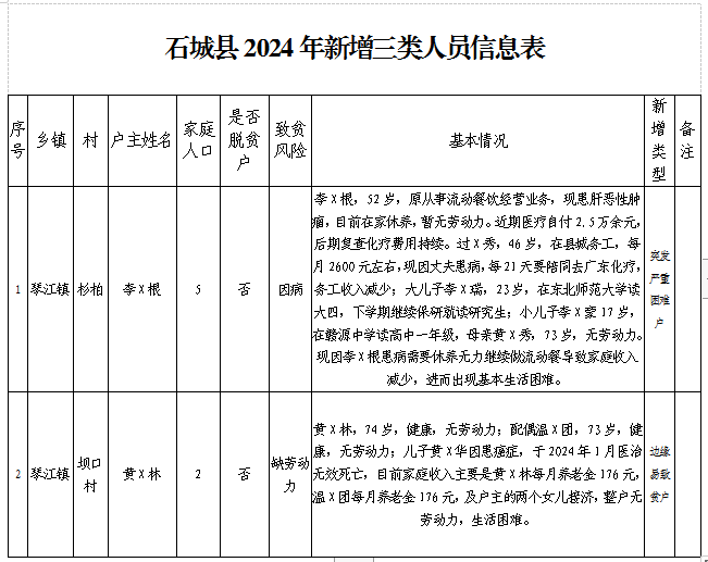 【公告公示】石城縣琴江鎮(zhèn)2024年4月新增“三類人員”公告