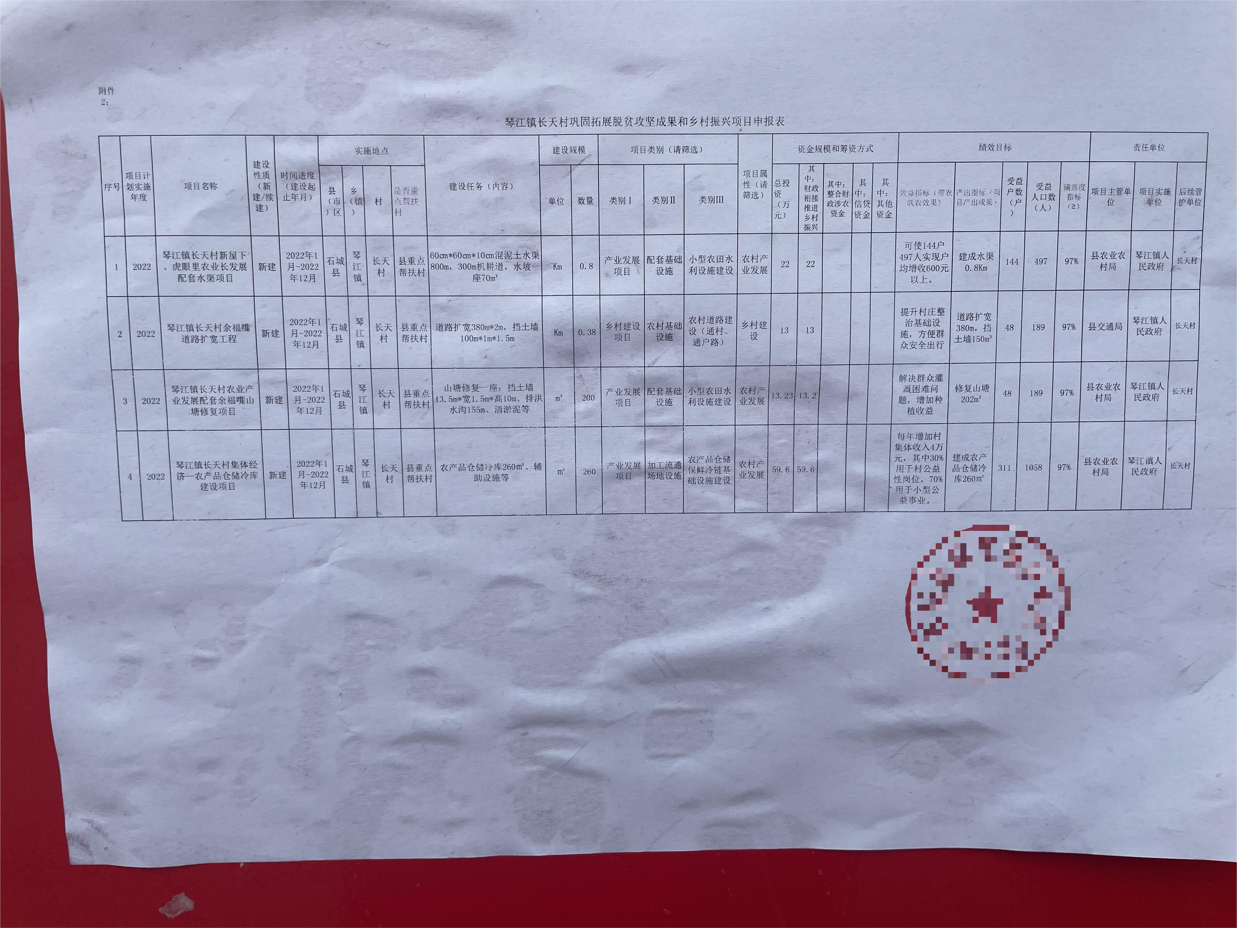 【公告公示】石城縣琴江鎮(zhèn)長(zhǎng)天村2022年鄉(xiāng)村振興補(bǔ)助資金項(xiàng)目公示