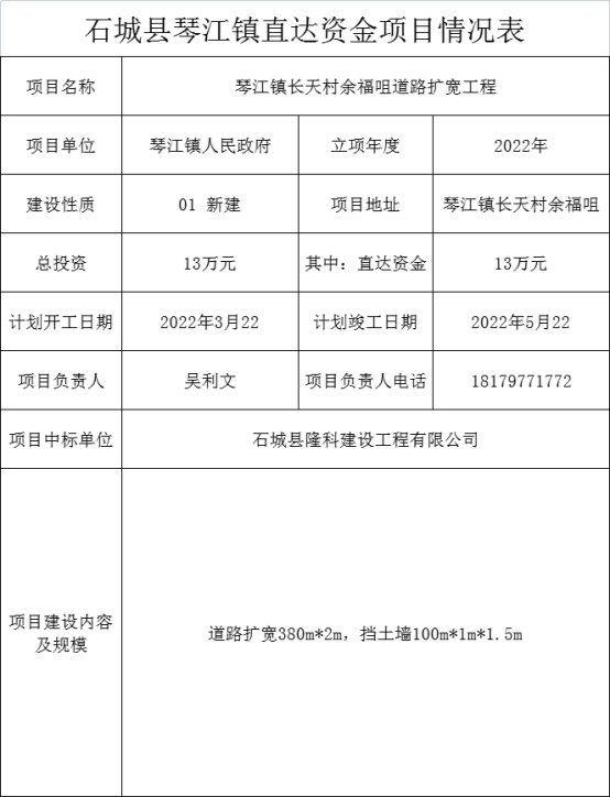【公告公示】石城縣琴江鎮(zhèn)長(zhǎng)天村2022年鄉(xiāng)村振興補(bǔ)助資金道路擴(kuò)寬項(xiàng)目公示