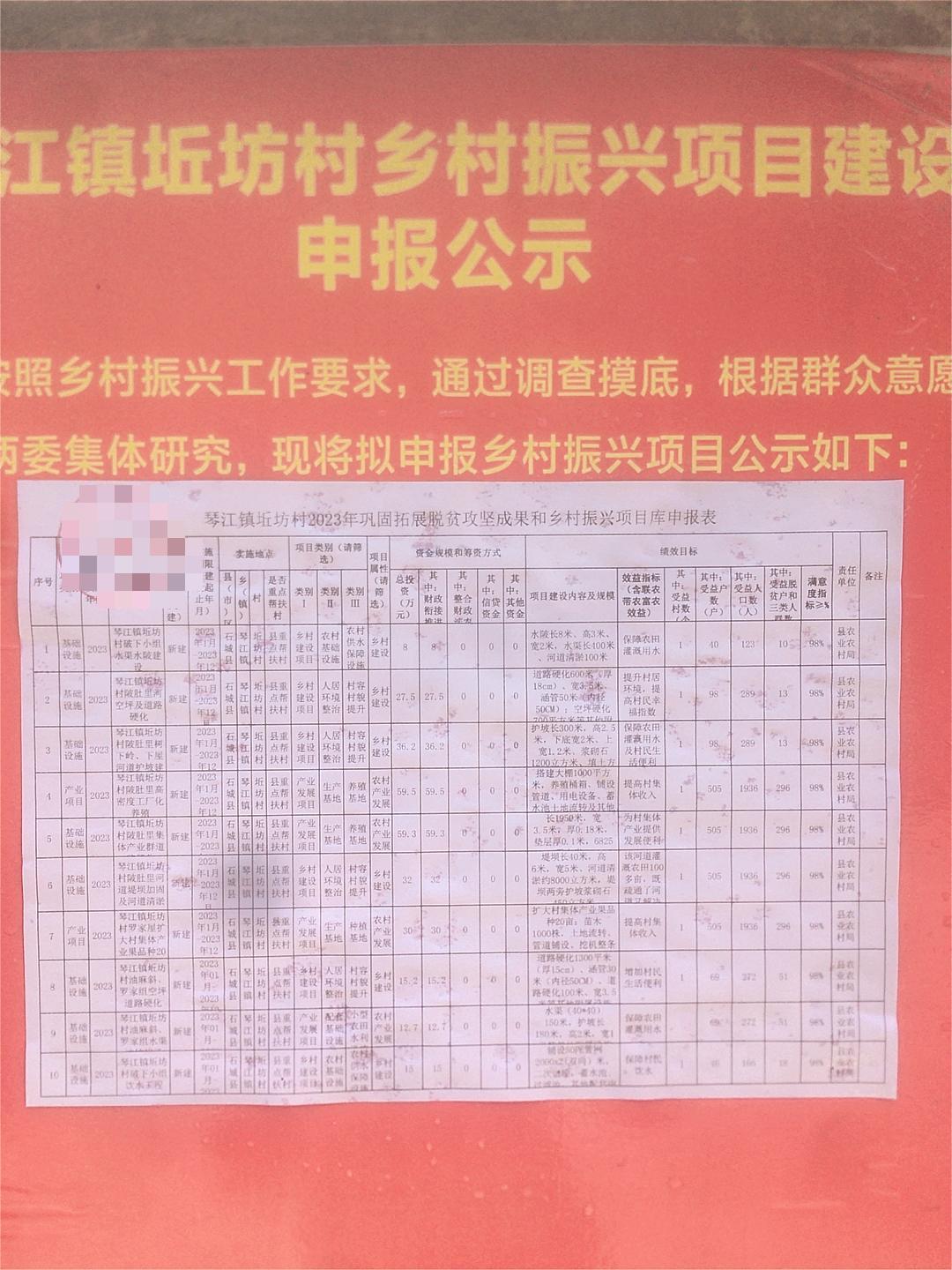 【公告公示】石城縣琴江鎮(zhèn)坵坊村2023年鞏固拓展脫貧攻堅成果和鄉(xiāng)村振興項目庫申報公示