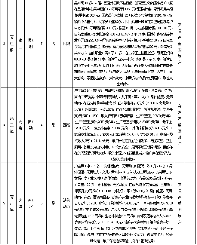 根據(jù)石城縣防貧返貧監(jiān)測(cè)預(yù)警與幫扶工作要求,縣鄉(xiāng)村振興局對(duì)我鎮(zhèn)擬納入監(jiān)測(cè)范圍的“三類人員”進(jìn)行批復(fù),同意將李*玲等6戶30人納入監(jiān)測(cè)對(duì)象,現(xiàn)予以公告(名單附后)。