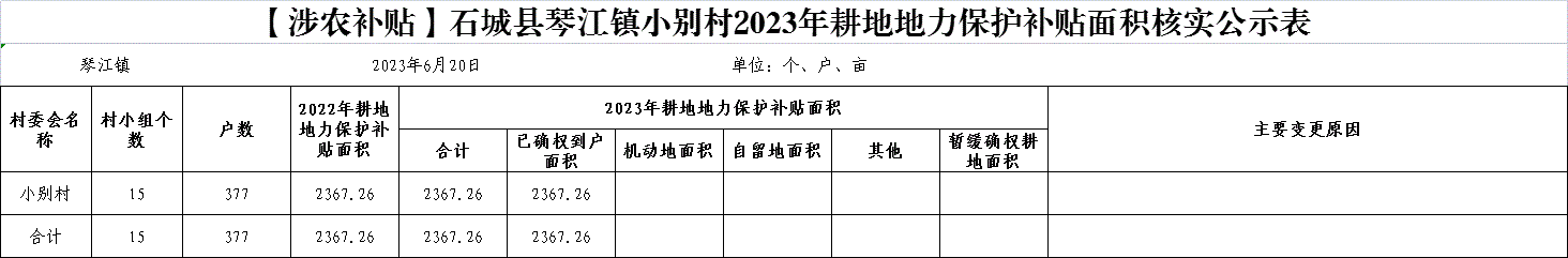 【涉農(nóng)補(bǔ)貼】石城縣琴江鎮(zhèn)小別村2023年耕地地力保護(hù)補(bǔ)貼面積核實(shí)公示表