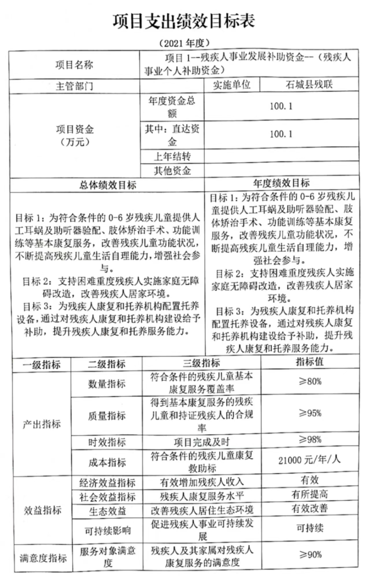 2021年殘疾人事業(yè)發(fā)展補(bǔ)助資金指標(biāo)合計(jì)100.1萬元。