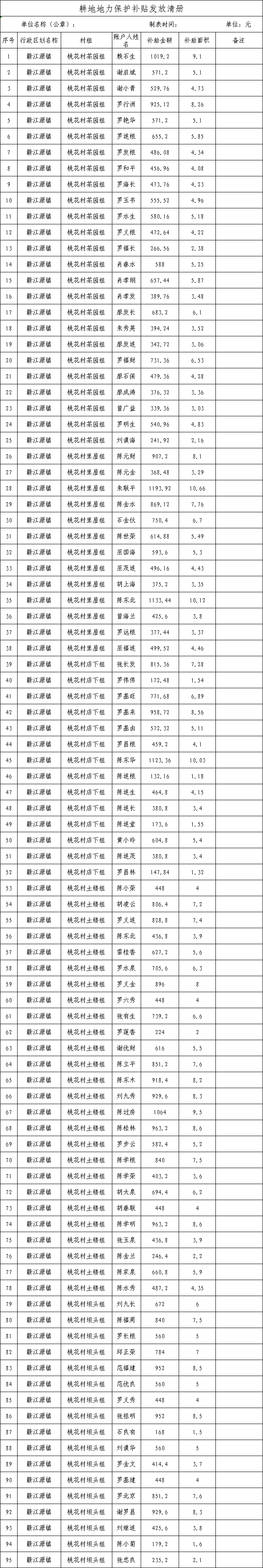 【耕地補(bǔ)貼】(桃花村)2023年耕地地力保護(hù)補(bǔ)貼發(fā)放清冊(cè)
