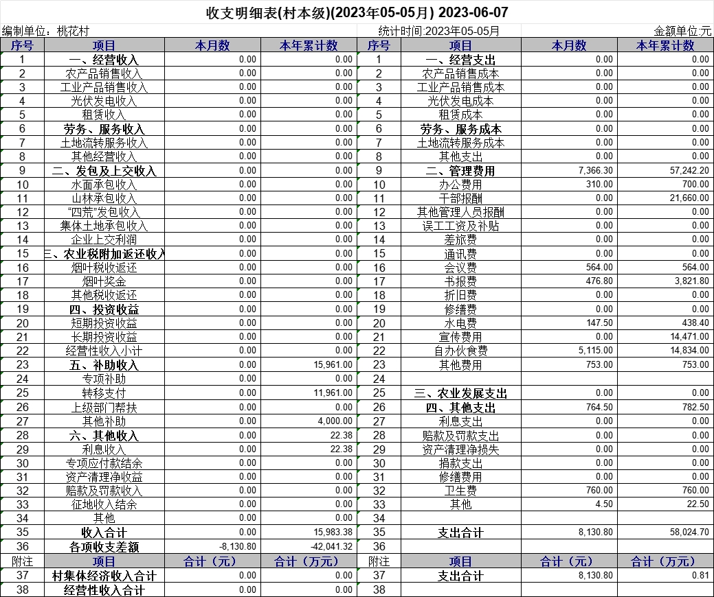 【財務(wù)支出】桃花村2023年5月收益及收益分配表