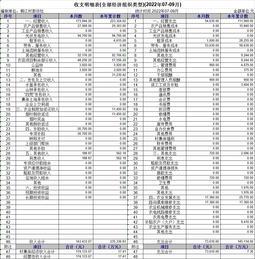 【財務(wù)收支】小松鎮(zhèn)桐江村2022年3季度財務(wù)收支公示