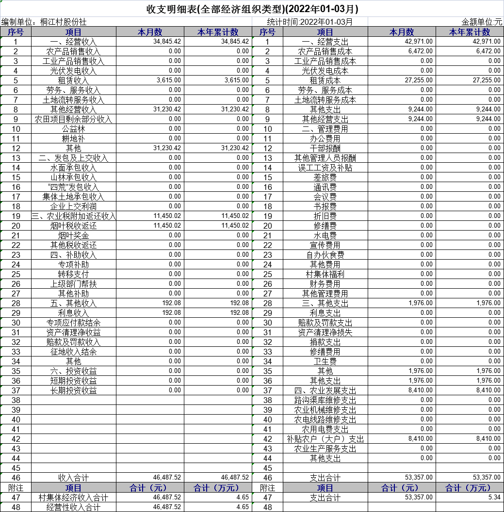 【財務(wù)收支】小松鎮(zhèn)桐江村2022年1季度財務(wù)收支公示